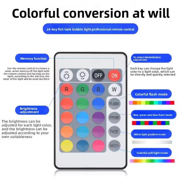 Featuring high-brightness LED beads inside a clear bubble tube, it creates a dynamic underwater effect while allowing easy color and mode control via remote.