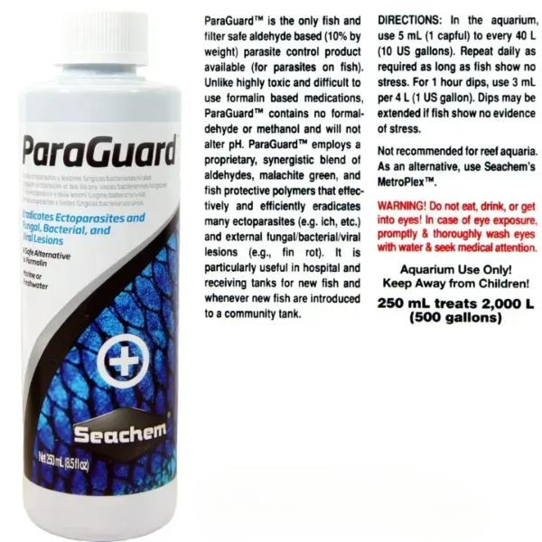 • SEACHEM ParaGuard is the only fish and filter safe aldehyde based (10% by weight) parasite control product available (for parasites on fish).